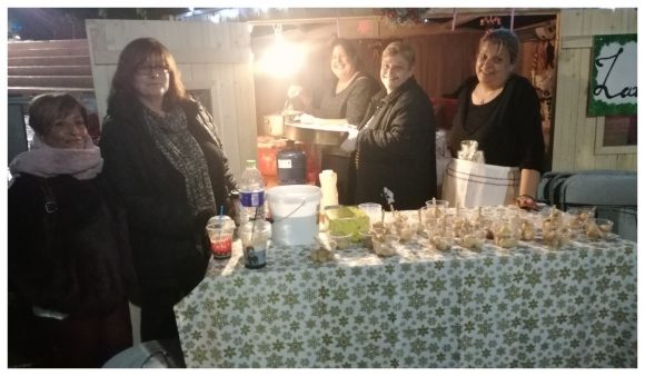 Οι γυναίκες του συλλόγου Αμπελακίων, στο «ζαχαρόσπιτο» τους, έφτιαχναν σπιτικούς πεντανόστιμους λουκουμάδες και κερνούσαν τον κόσμο, μαζί με κουραμπιέδες και μελομακάρονα.