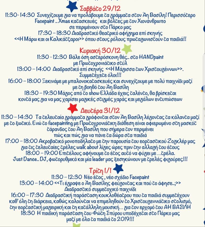 Το πρόγραμμα από σήμερα έως και την Τρίτη 1 Ιανουαρίου, διαμορφώνεται ως εξής: