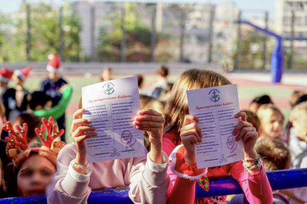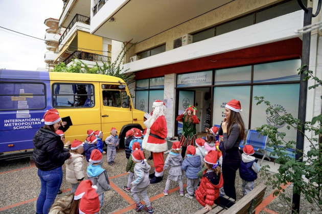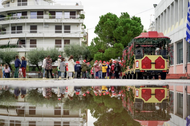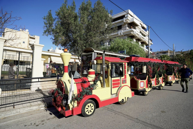 Το τρενάκι του Δήμου Γλυφάδας μοίρασε τα κάλαντα και σκουφάκια στα σχολεία