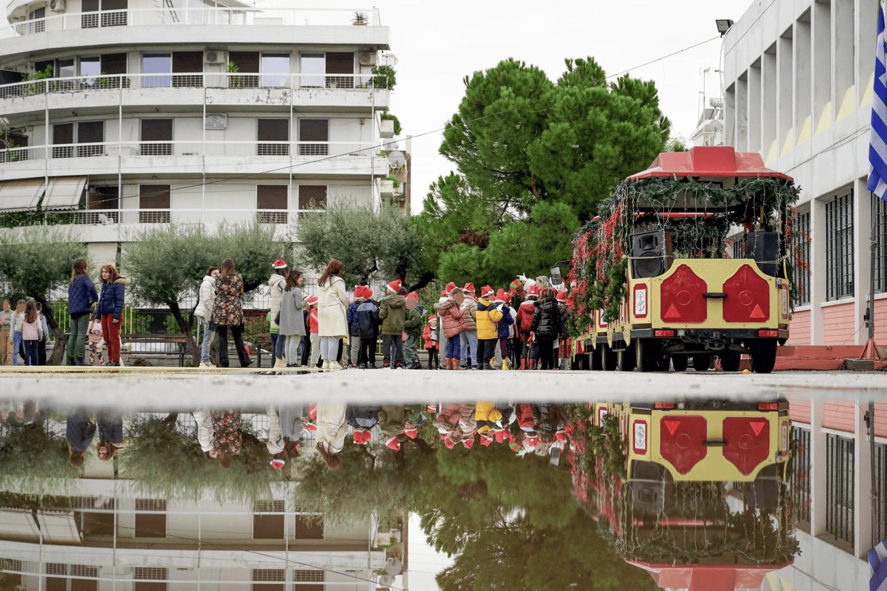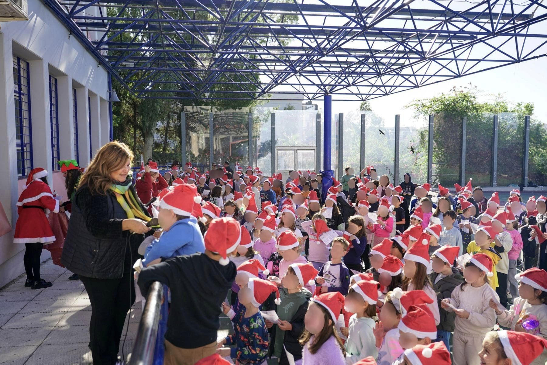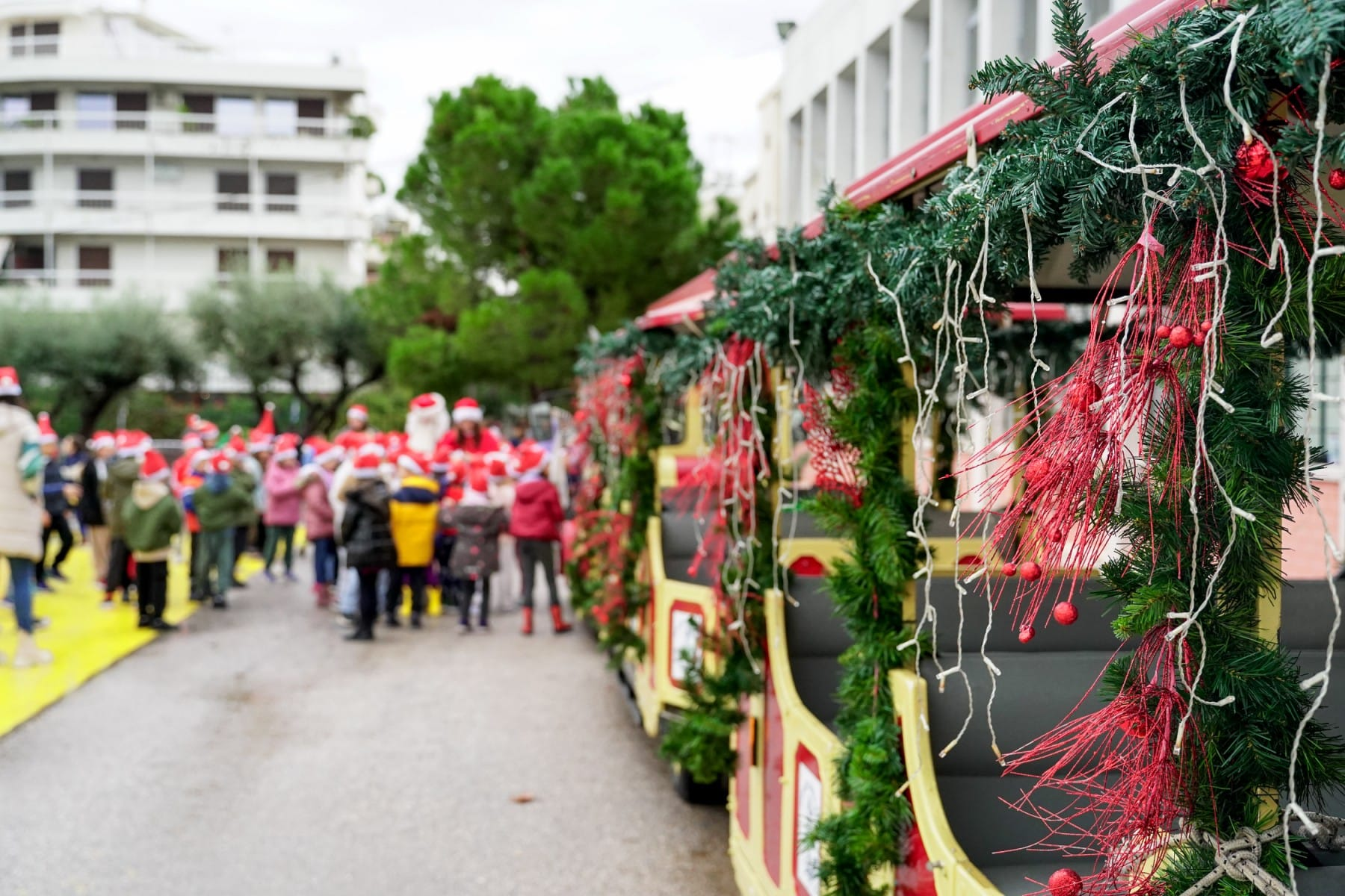 Από όλες τις σχολικές μονάδες της πόλης -παιδικούς σταθμούς, νηπιαγωγεία, δημοτικά, γυμνάσια, λύκεια- πέρασε τις τελευταίες δύο εβδομάδες το τρενάκι του Δήμου Γλυφάδας με τον Αη Βασίλη και το ξωτικό του και μοίρασε τυπωμένα Κάλαντα, καθώς και κόκκινα σκουφάκια σε όλα τα παιδιά.