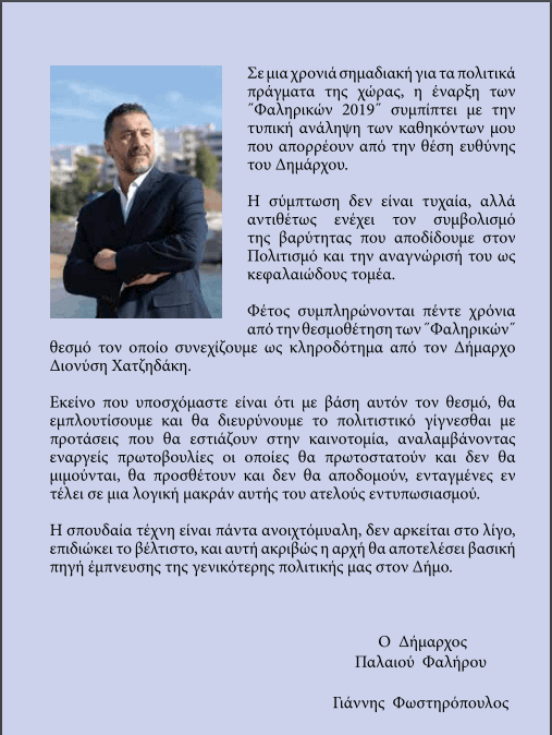 Το πολιτιστικό φεστιβάλ «Φαληρικά 2019», θα γεμίσει για δύο εβδομάδες την παραλία με μουσική και πολιτιστικά δρώμενα.