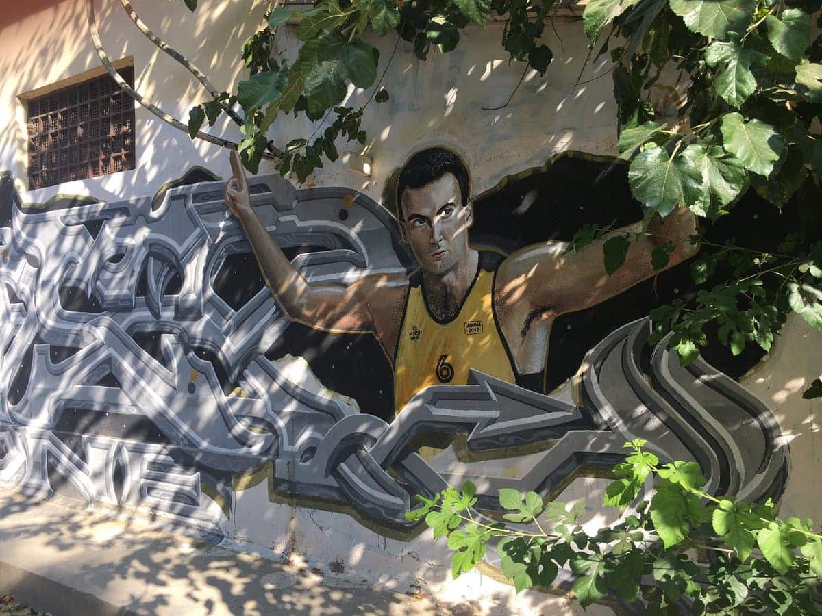 Η πανέμορφη εικόνα του «γκάνγκστερ» του ελληνικού μπάσκετ που κοσμούσε τοίχο κτιρίου σε πάρκο της Αθήνας δεν υπάρχει πια.