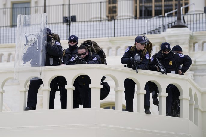 Μάλιστα όπως φαίνεται ξεκάθαρα αστυνομικοί αναγκάστηκαν να βγάλουν όπλα για να σταματήσουν την εισβολή εντός του συνεδριακού χώρου, καθώς εκτός από αυτό, δεκάδες υποστηρικτές του Τραμπ κυκλοφορούσαν σχεδόν ανενόχλητοι. Την ίδια ώρα, σε κρίσιμη κατάσταση βρίσκεται η υγεία μιας γυναίκας, αφού πυροβολήθηκε στο στήθος στο Καπιτώλιο, όπως μεταδίδει το CNN.