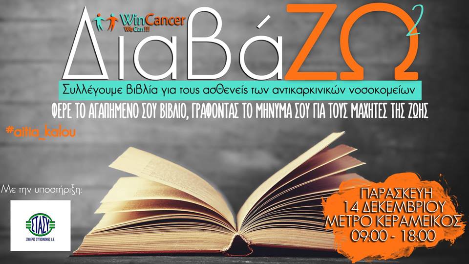 δεχόμαστε βιβλία με την χειρόγραφη ευχή σας, για τους ανθρώπους δίπλα μας, που την περίοδο των εορτών των Χριστουγέννων θα νοσηλεύονται στα αντικαρκινικά νοσοκομεία της χώρας μας.