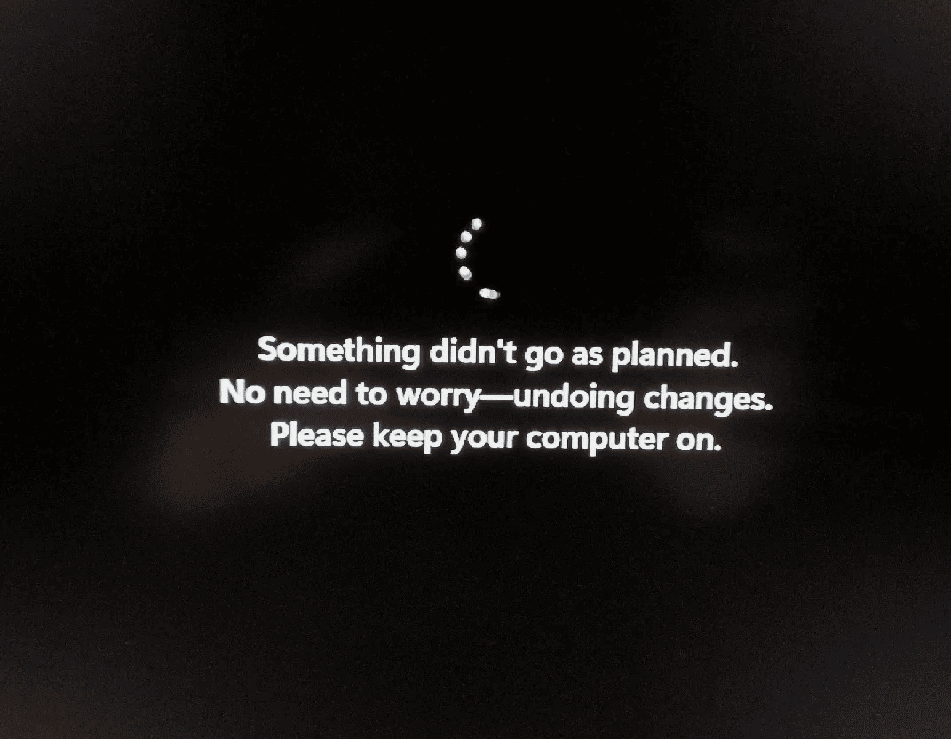 Όταν συμβεί αυτό, θα δείτε το “Κάτι δεν πήγε όπως είχε προγραμματιστεί. Δεν χρειάζεται να ανησυχείτε – αναιρώντας τις αλλαγές. Παρακαλώ κρατήστε τον υπολογιστή σας ανοιχτό” στην οθόνη σας.