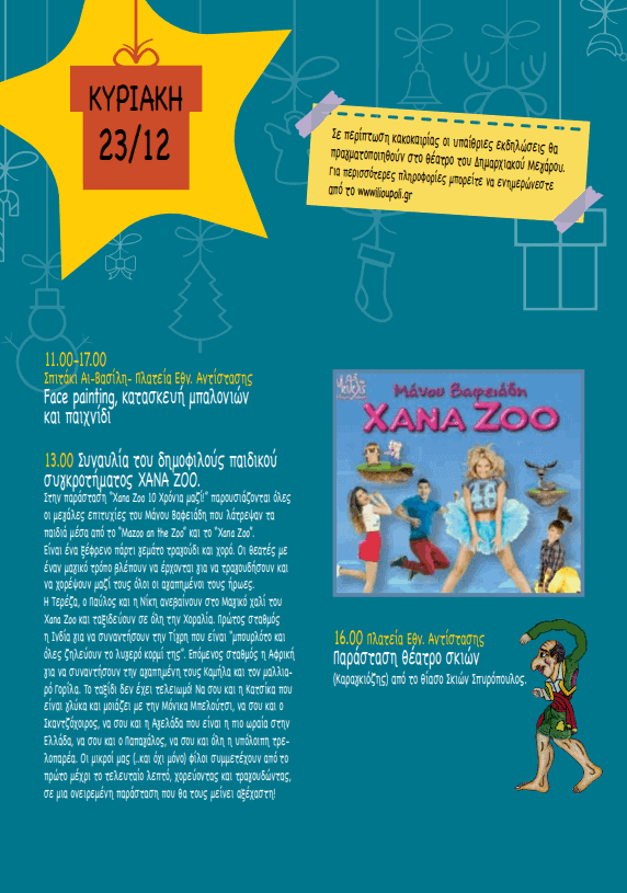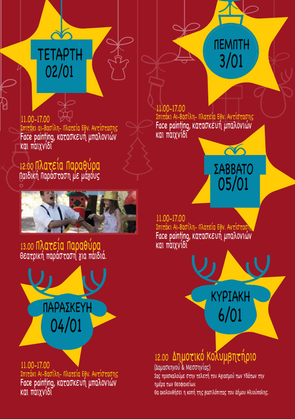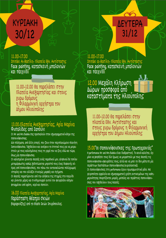 Δείτε το πρόγραμμα εκδηλώσεων Χριστούγεννα 2018 – Πρωτοχρονιά 2019 στην Ηλιούπολη