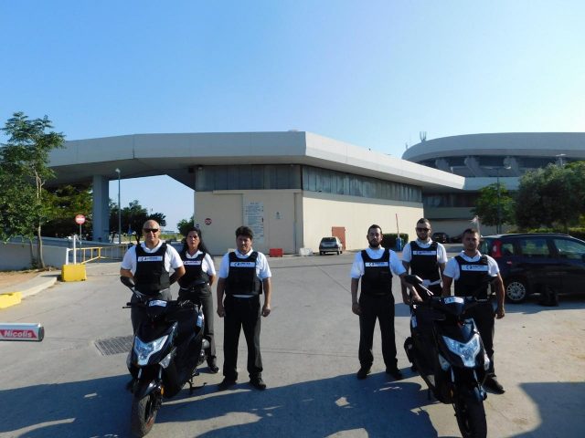 Άνδρες της φύλαξης περιπολούν την έκταση του σταδίου αποτρέποντας κρουσματα παραβατικότητας.