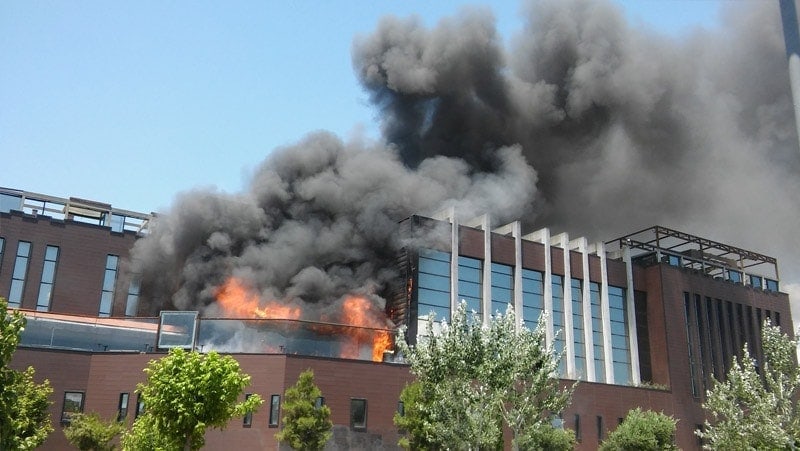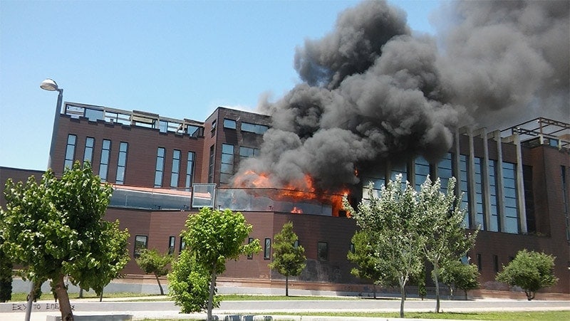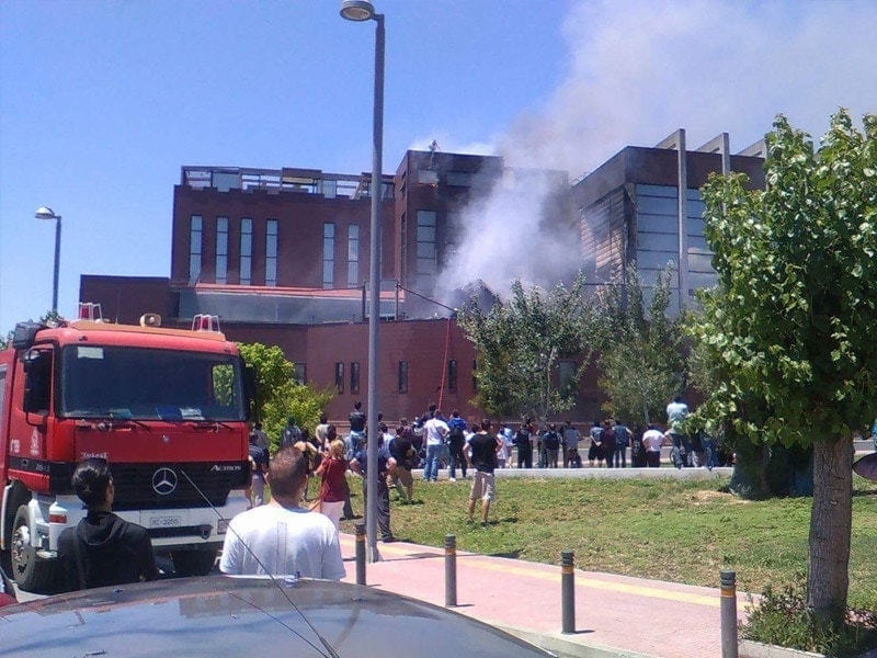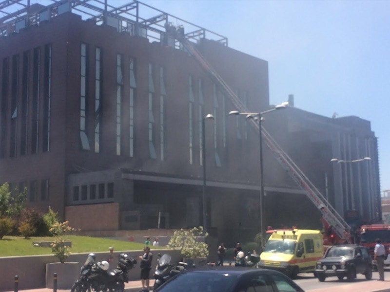 Η φωτιά εκδηλώθηκε στον εξωτερικό χώρο του κτιρίο, πάνω από τον δεύτερο όροφο και επιτόπου βρίσκονται δέκα οχήματα της πυροσβεστικής με 30 πυροσβέστες.